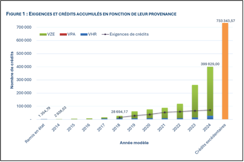 Les données les plus récentes démontrent que les constructeurs automobiles ont largement atteint les objectifs de la norme. Selon le bilan publié en mars 2026, l’industrie a accumulé près de 735 000 crédits excédentaires depuis l’entrée en vigueur de la norme VZE, soit plus du triple des crédits nécessaires pour satisfaire aux exigences réglementaires prévues pour cette période5.