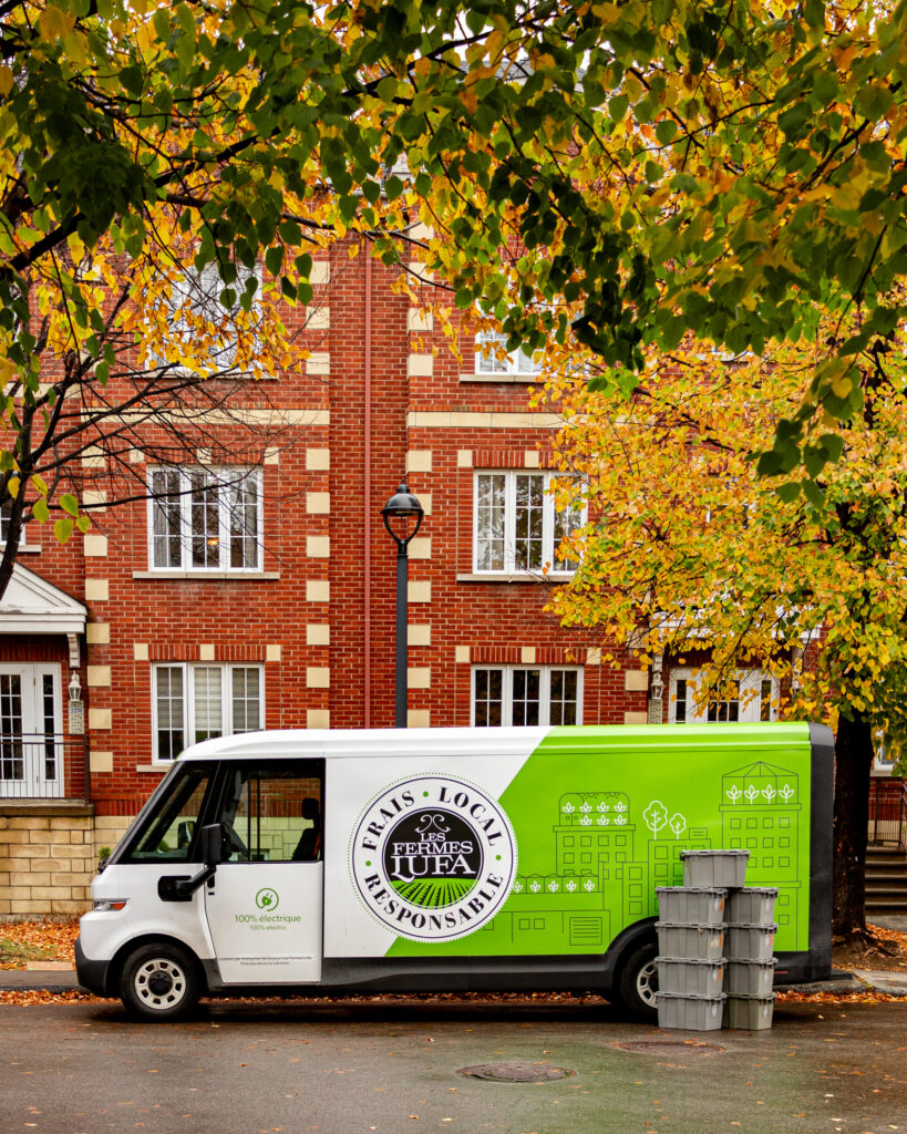 Les livraisons de Lufa sont réalisées exclusivement par des sous-traitants, à l’exception d’un véhicule BrightDrop utilisé par l’équipe marketing pour transporter le matériel de leurs opérations. Ce modèle repose sur des relations durables : « On travaille avec nos sous-traitants depuis très longtemps. On cherche à les accompagner dans leur croissance. »